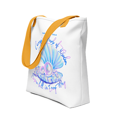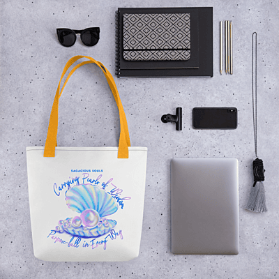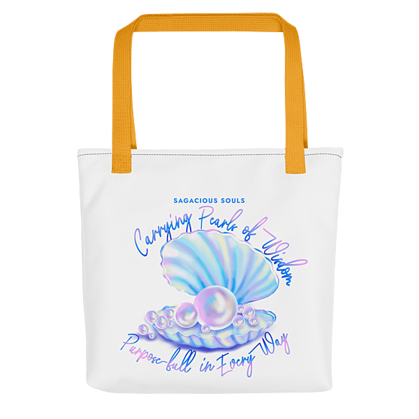 Step into your day with intention, beauty, and soul-led elegance. This Sagacious Souls Tote Bag features the same dreamy seashell-and-pearls illustration from your coastal-themed mug — creating a cohesive, enchanting piece that feels serene, feminine, and deeply symbolic. The artwork showcases a radiant open seashell filled with shimmering pearls. The design evokes inner treasure, emotional clarity, and the truth that wisdom often comes from the depths within. Paired with your signature affirmation — “Carrying Pearls of Wisdom — Purpose-Full in Every Way.” — this tote becomes far more than a bag. It’s a reminder that what you carry (your experiences, lessons, and dreams) is precious and powerful. Spacious, lightweight, and crafted for daily use, it’s ideal for your notebooks, journals, laptop, water bottle, groceries, or beach essentials — all while maintaining a polished, soulful aesthetic. ✨ Features: Premium print featuring seashell + pearl illustration Durable, lightweight material perfect for everyday errands Comfortable shoulder straps for easy carrying Spacious interior for books, journals, tech, and more Empowering affirmation on the front Coordinates beautifully with the matching mug for a full “Pearls of Wisdom” collection A meaningful accessory for soul-led routines, workshops, travel, or gifting Carry your essentials. Carry your purpose. Carry your pearls of wisdom — everywhere you go. • 100% polyester • Bag size: 15″ × 15″ (39 × 39 cm) • Capacity: 2.6 US gal (10 l) • Maximum weight limit: 44lbs (20 kg) • Dual handles made from 100% natural cotton bull denim • Handle length: 26″ (67 cm), width 1″ (2.5 cm) • The handles can slightly differ depending on the fulfillment location Age restrictions: For adults EU Warranty: 2 years Other compliance information: Meets the lead and cadmium level requirements. In compliance with the General Product Safety Regulation (GPSR), Oak inc. and SINDEN VENTURES LIMITED ensure that all consumer products offered are safe and meet EU standards. For any product safety related inquiries or concerns, please contact our EU representative at gpsr@sindenventures.com. You can also write to us at 123 Main Street, Anytown, Country or Markou Evgenikou 11, Mesa Geitonia, 4002, Limassol, Cyprus.