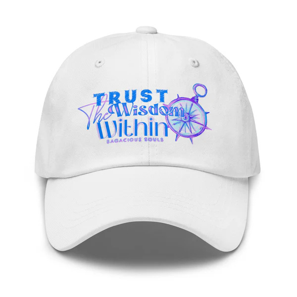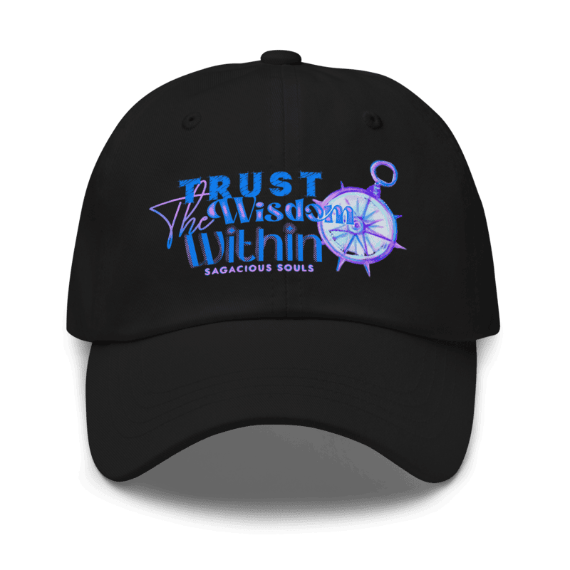 A timeless essential with a soul-led message. This Sagacious Souls Hat blends effortless style with intentional design, making it the perfect everyday reminder to slow down, breathe, and follow your inner compass. Embroidered across the front, the affirmation “Trust the Wisdom Within.” encourages you to tune into your intuition — the truest guide you’ll ever have. Paired with a finely detailed compass design, this hat symbolizes direction, clarity, and alignment on your personal journey. Crafted from soft, breathable cotton with an easy unstructured shape, this dad hat offers a relaxed fit made for daily wear — from morning walks and errands to journaling sessions, travel days, and healing work. ✨ Features: Classic dad hat silhouette with soft, unstructured crown Premium cotton fabric for breathable comfort High-quality embroidery for long-lasting detail Adjustable buckle strap for a personalized fit Compass design representing guidance and alignment Empowering affirmation: “Trust the Wisdom Within.” Perfect for conscious living, coaching spaces, self-care routines, or casual everyday outfits Wear it as a symbol. Wear it as an affirmation. Wear it as a reminder that your path begins within. • 100% chino cotton twill • Green Camo color is 35% chino cotton twill, 65% polyester • Unstructured, 6-panel, low-profile • 6 embroidered eyelets • 3 ⅛” (7.6 cm) crown • Adjustable strap with antique buckle • Blank product sourced from Vietnam or Bangladesh Age restrictions: For adults EU Warranty: 2 years Other compliance information: Meets the lead, bisphenols and phthalates level requirements. In compliance with the General Product Safety Regulation (GPSR), Oak inc. and SINDEN VENTURES LIMITED ensure that all consumer products offered are safe and meet EU standards. For any product safety related inquiries or concerns, please contact our EU representative at gpsr@sindenventures.com. You can also write to us at 123 Main Street, Anytown, Country or Markou Evgenikou 11, Mesa Geitonia, 4002, Limassol, Cyprus.