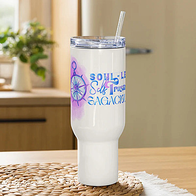 Move with intention, sip with purpose. This Sagacious Souls Travel Mug is designed for the soul who leads from within and honors their own pace, no matter where the day takes them. With a sturdy handle, double-walled insulation, and two versatile lid options, this travel mug blends function and soul-centered style into your everyday routine. Featuring a beautifully detailed compass design, this mug symbolizes alignment, direction, and the power of trusting your inner true north. Paired with the affirmation “Soul-Led. Self Trusting. Sagacious.”, it becomes more than a drinkware piece — it’s a reminder to move through life guided by wisdom, not pressure. Whether you're enjoying a warm morning brew, an iced latte, or a mid-day hydration break, this mug keeps your beverage at the perfect temperature while keeping you grounded in your intention. ✨ Features: Double-wall stainless steel for optimal temperature retention Comfortable side handle for easy carrying Includes two lid options for full versatility: - Press-in plastic lid for hot drinks or spill-resistant sipping Screw-on lid with straw for cold beverages and on-the-go hydration Compass design symbolizing guidance, clarity, and inner alignment Empowering printed tagline: “Soul-Led. Self Trusting. Sagacious.” Durable, lightweight, and perfect for travel, work, errands, or quiet moments at home Fits most car cup holders Bring it to the office, to the gym, to your morning walk — or keep it on your desk as a daily affirmation of your soul-led journey. • Made with stainless steel • Lead and BPA-free materials used • Hand-wash only • Blank product sourced from China 25 oz (739 ml) size: • Height: 7.9″ (20 cm) • Upper diameter: 3.3″ (8.4 cm) • Bottom diameter: 2.7″ (7 cm) • Comes with a plastic press-in lid 40 oz (1183 ml) size: • Height: 10.4″ (26.5 cm) • Upper diameter: 3.9″ (9.9 cm) • Bottom diameter: 2.9″ (7.4 cm) • Comes with a plastic straw and screw-on lid Caution! To prevent steam pressure buildup, always open the lid before placing it on a hot drink. Age restrictions: For adults EU Warranty: 2 years Other compliance information: Meets the lead, cadmium and heavy metal level requirements. In compliance with the General Product Safety Regulation (GPSR), Oak inc. and SINDEN VENTURES LIMITED ensure that all consumer products offered are safe and meet EU standards. For any product safety related inquiries or concerns, please contact our EU representative at gpsr@sindenventures.com. You can also write to us at 123 Main Street, Anytown, Country or Markou Evgenikou 11, Mesa Geitonia, 4002, Limassol, Cyprus.